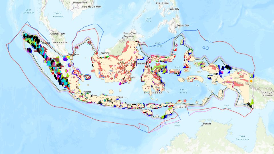 Peta berbasis ArcGIS yang menampilkan persebaran sumber daya nikel di Indonesia.
