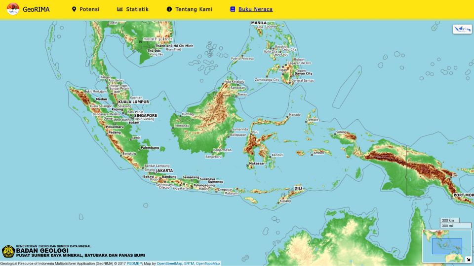 GeoRIMA dari Kementerian Energi dan Sumber Daya Mineral (ESDM) menyajikan peta sumber daya alam Indonesia, mulai dari logam dasar, logam mulia, logam besi dan paduannya, hingga logam ringan dan langka.